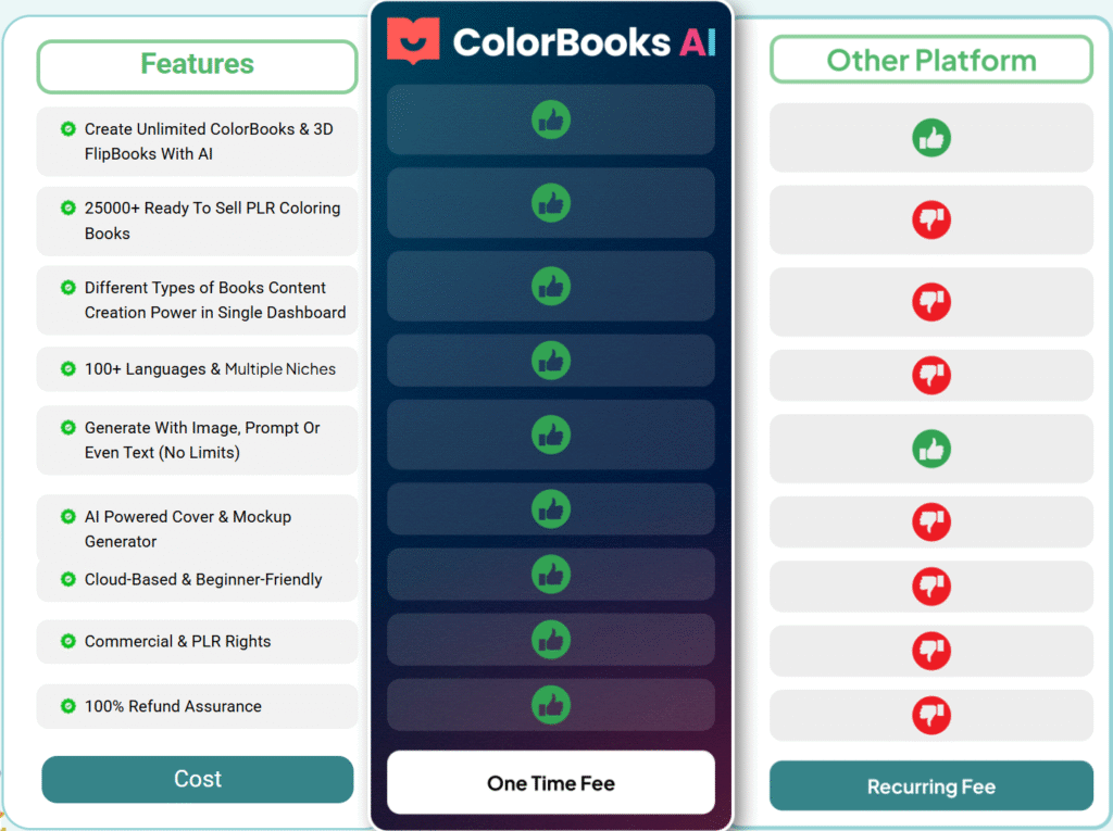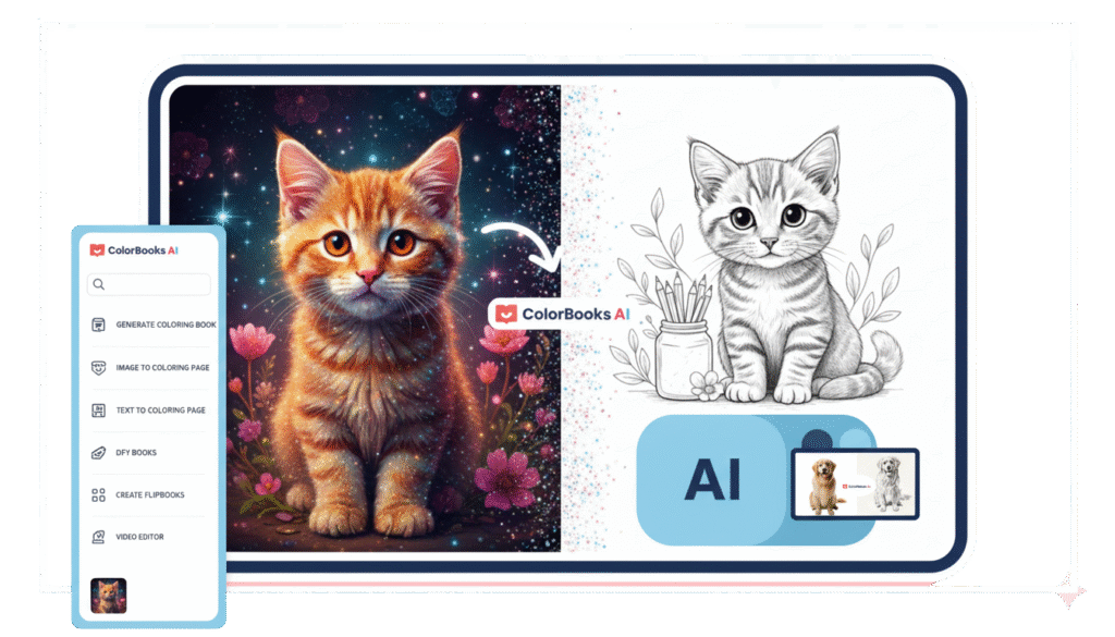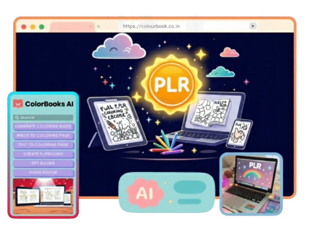 Unlike other platforms, ColorBooks AI gives you everything — image-to-coloring, text-to-coloring, complete book generator, flipbooks, DFY books, PLR rights — all inside one powerful dashboard.